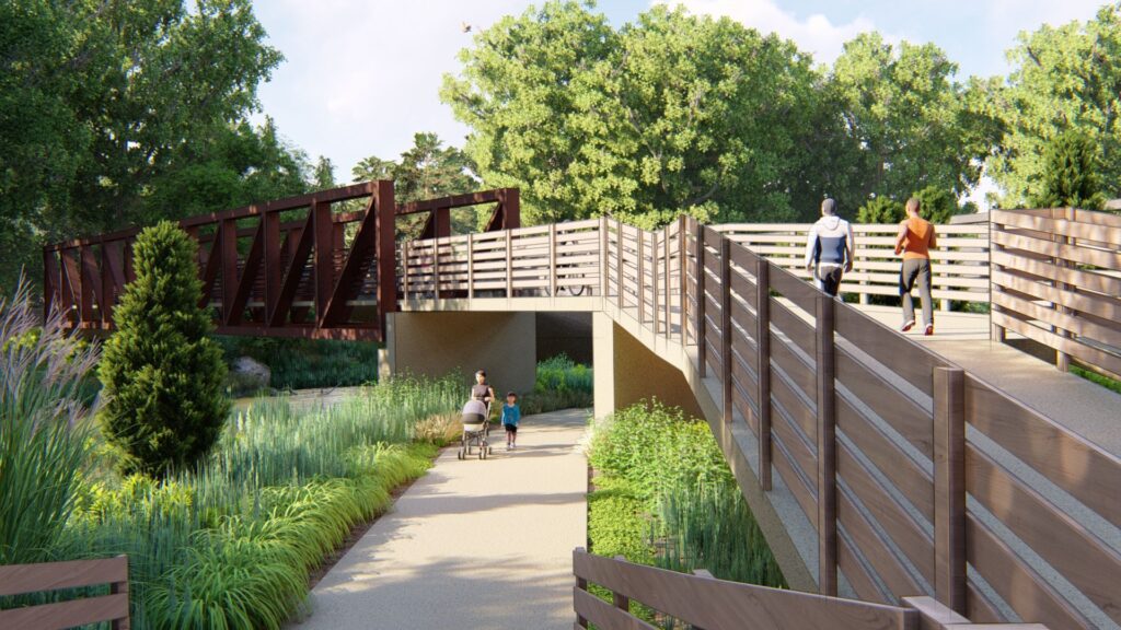 (Rendering of new trailhead at Windy Hill and Bentley Road intersection.)